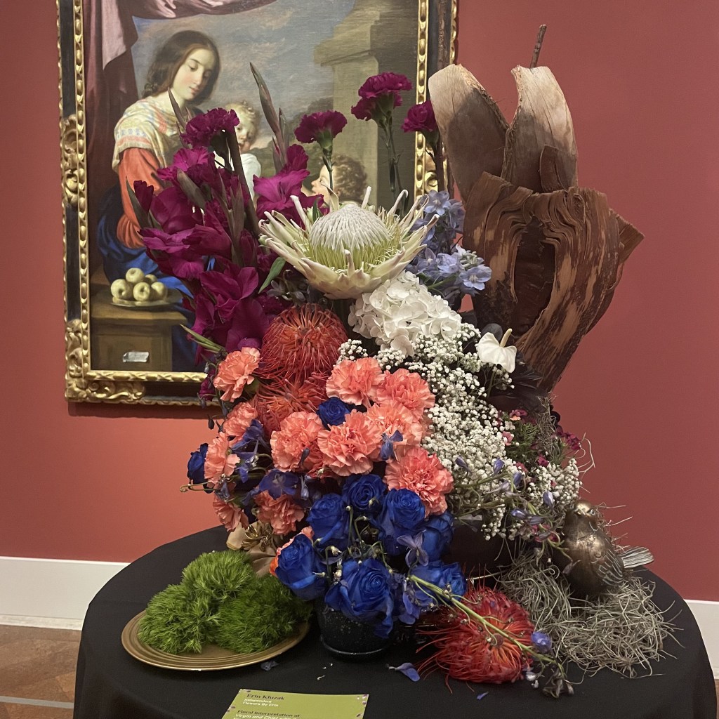 This past weekend I volunteered at the SDMA for their annual Art Alive exhibition. It is an exhibition that has 100 live floral interpretations of the art they have in the museum. For a majority of my shift, I stood outside in the sun while people passed by saying how beautiful the arrangements were. I talked to some of the designers and they described to me the thought and composition process of their arrangements. I stood there, sweating and restless, imagining how the museum looked. With only 30 minutes left of my shift, one of the staff members asked if I wanted to tour the museum before it was gone until next year. Elated to get out of the sun and to finally see the exhibition for myself, I rushed inside before they started to clear out the visitors. Even from what all the people said to me, my imagination failed me in comparison to my reality. The arrangements were a lot more personal (if that makes sense) than what I had initially thought and it made me reflect on how the designers interpreted the art in the museum to create their pieces.