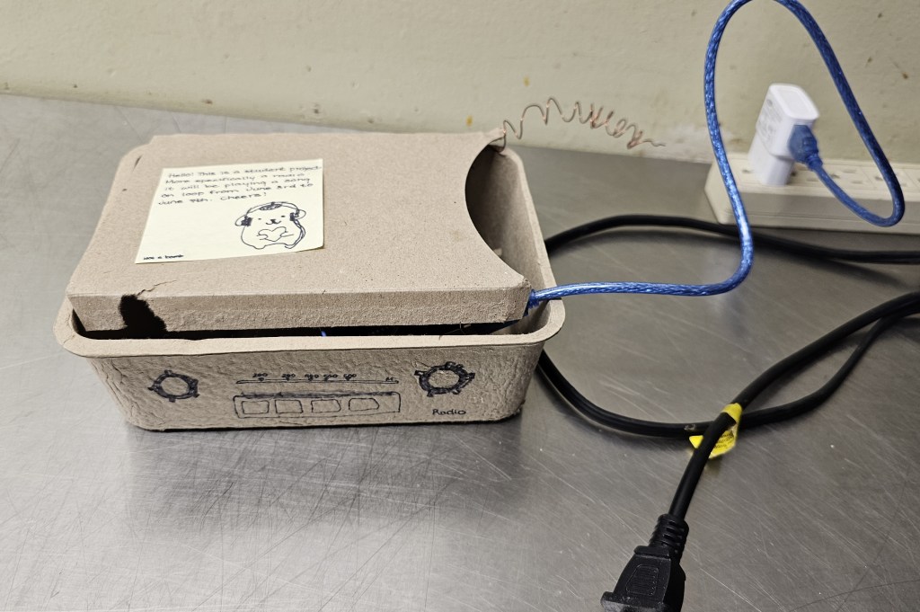 For VIS 147A, I built a radio that would play some random noises. The first riff I picked was a joke. It’s the riff to smoke on the water which is a song that most people play when they first learn guitar. Very overplayed rock song. I thought this would tie in nicely with the Che Cafe (where the radio can be found) as it is a very punk space with a lot of rock and indie shows. I thought people who would tune into the radio and are usually in the space would find it funny or familiar. The second and third sounds I play are to fit the name of the project. It’s all random and I think it captures the essence of the words “beep boop”.