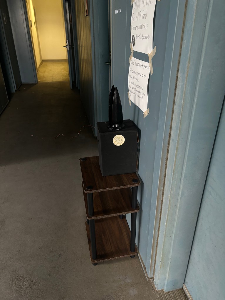 This radio installment was encased by a sculpture made from clay and cardboard, made to look like a crow. It was installed Monday June 3rd on the second floor of the Visual Arts Facility on UCSD campus, and ran on a battery pack, meaning in the evenings it was unplugged.